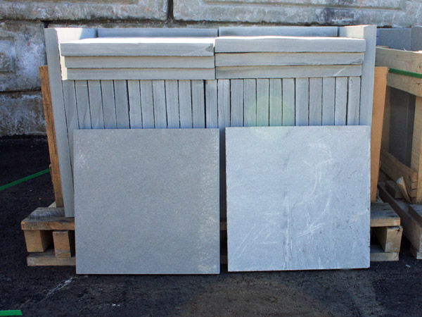 This Thermal Sawn Bluestone is quarried in Pennsylvania, and is formed deeper within the earth than natural bluestone. Due to the additional weight and pressure from above, the stone has fewer fault lines and must be sawn cut into layers. The stone is then “thermalled” – which involves rapidly heating it with a high temperature torch to refine the texturing.